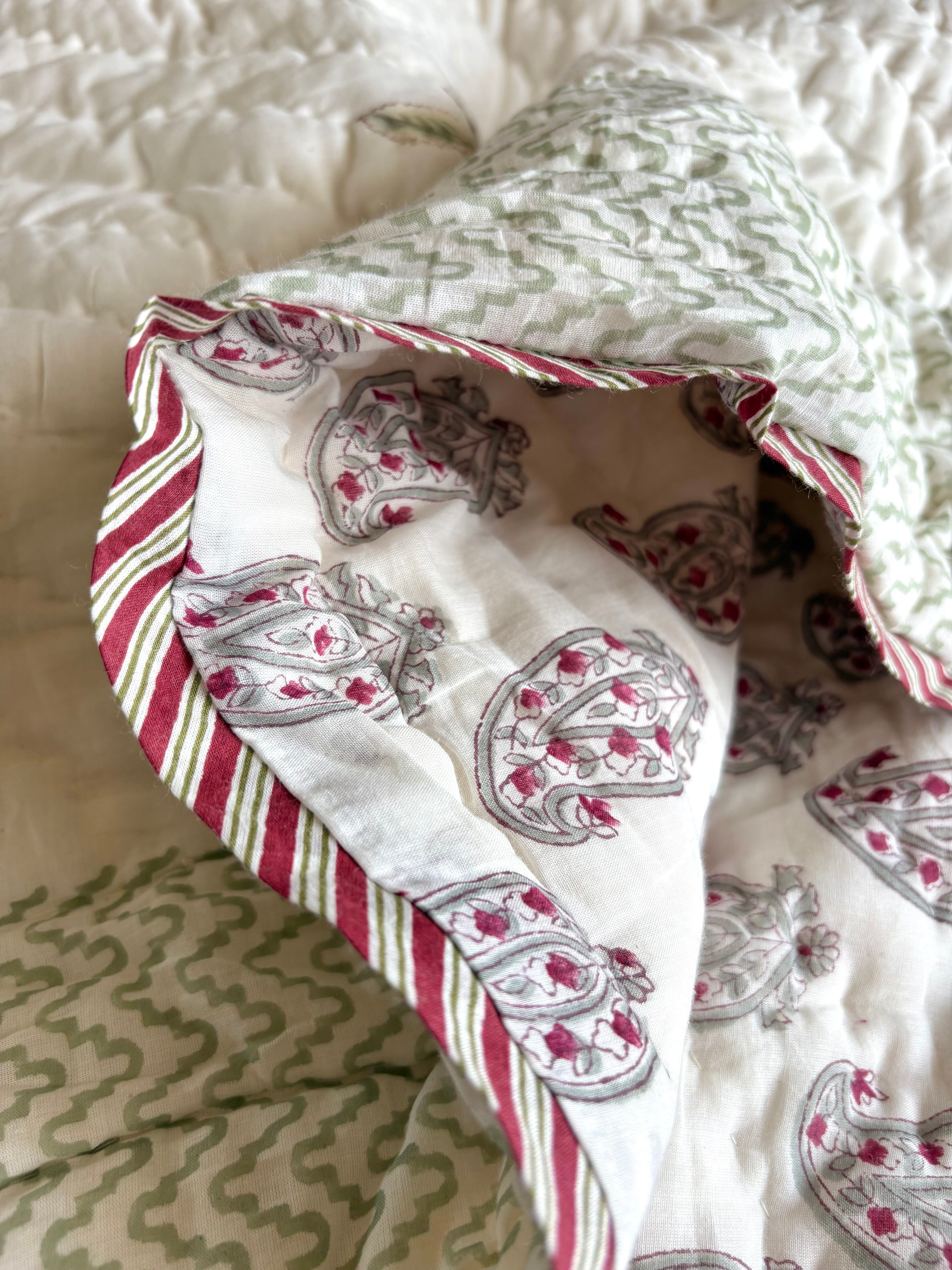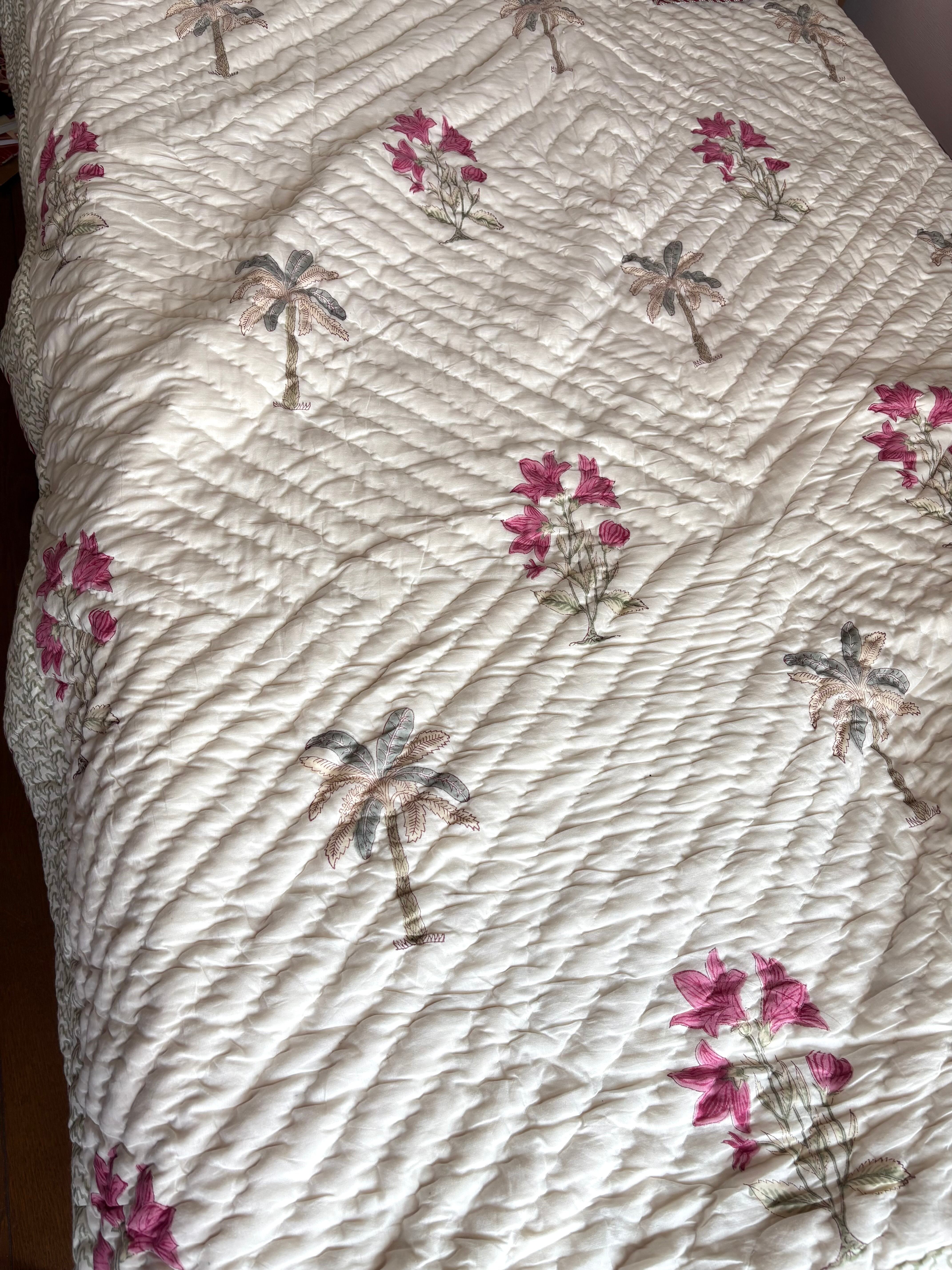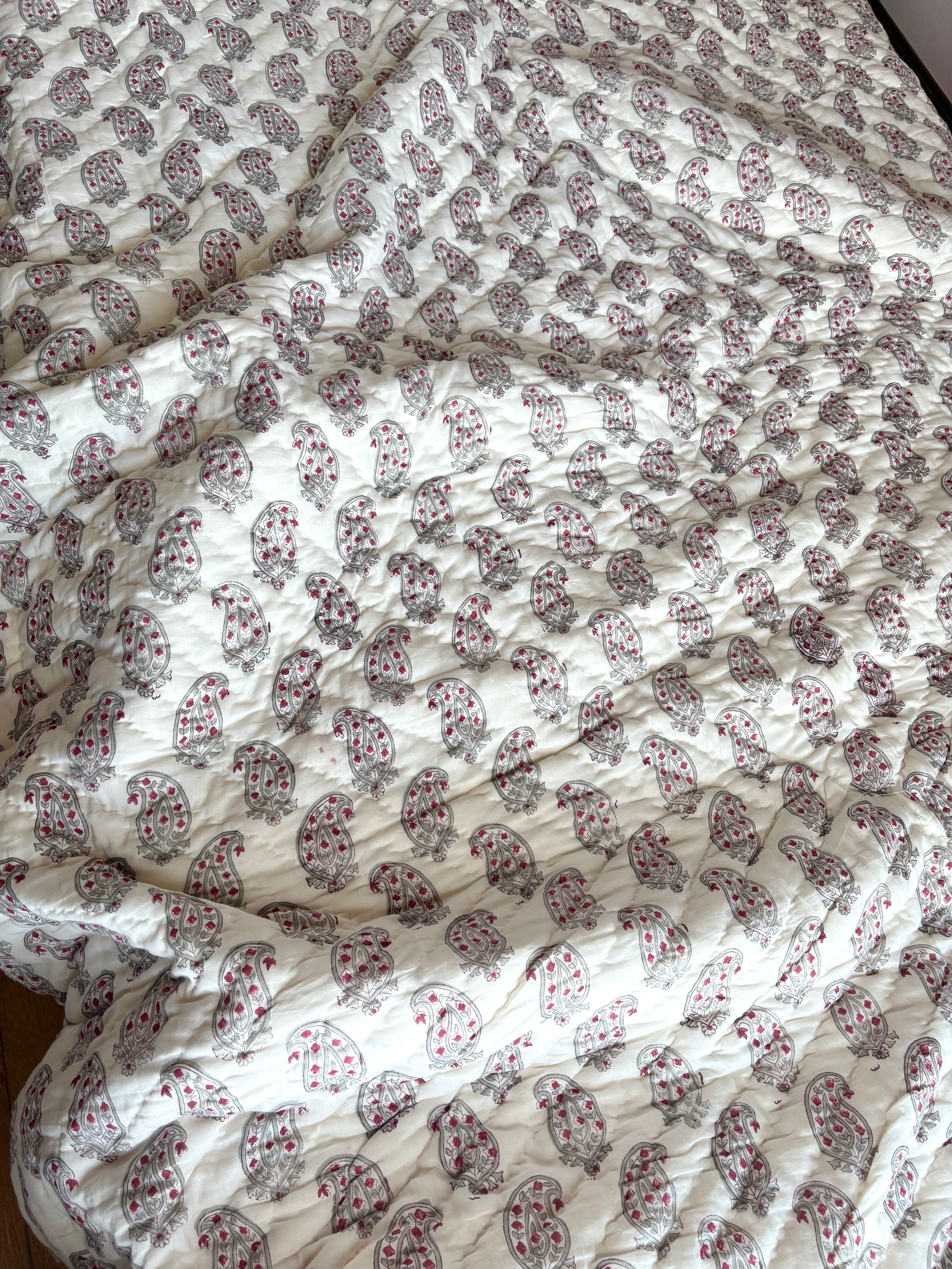 インド・ラジャスタン州ジャイプール伝統の木版染ハンドキルトの肌布団です。