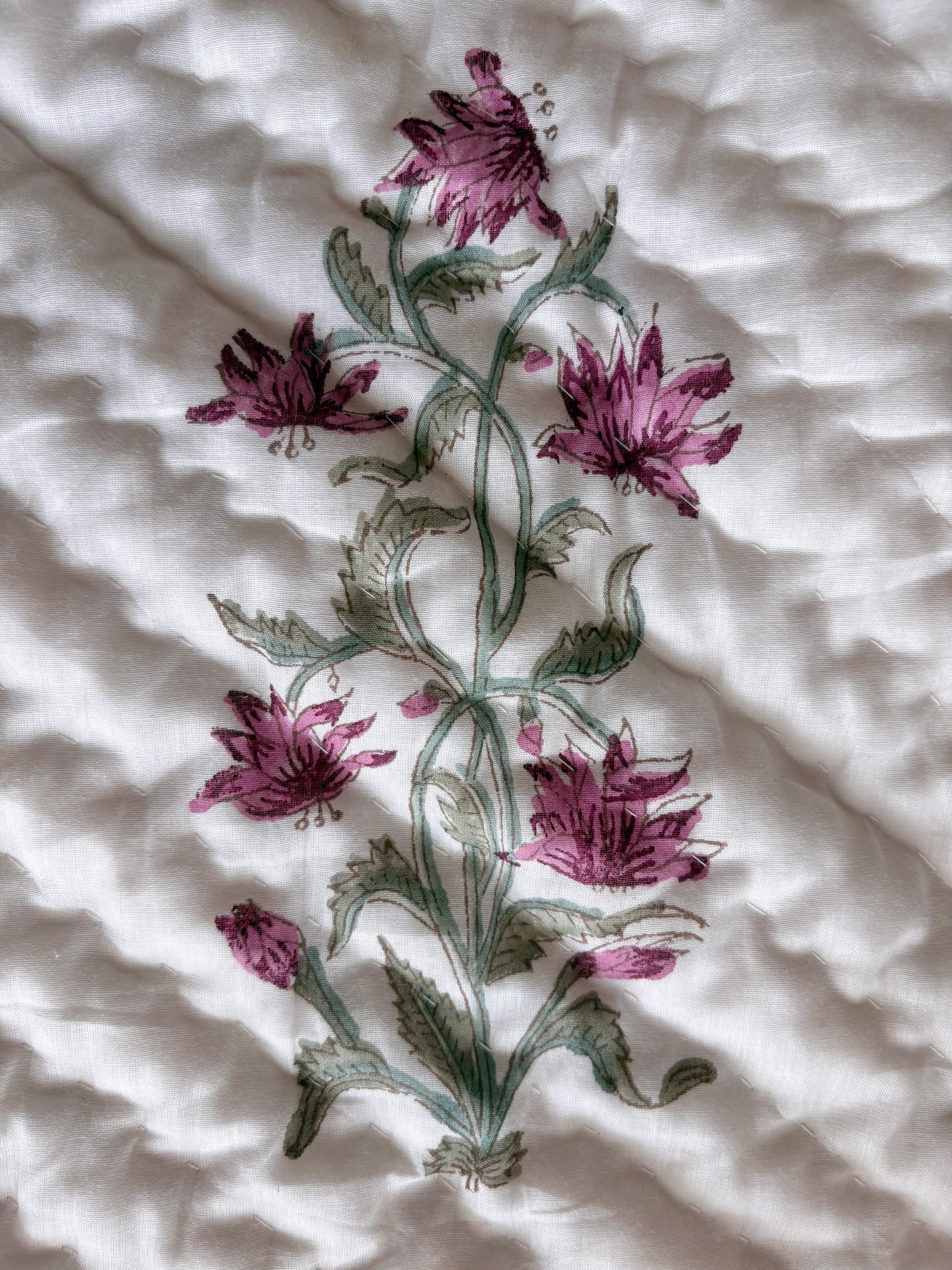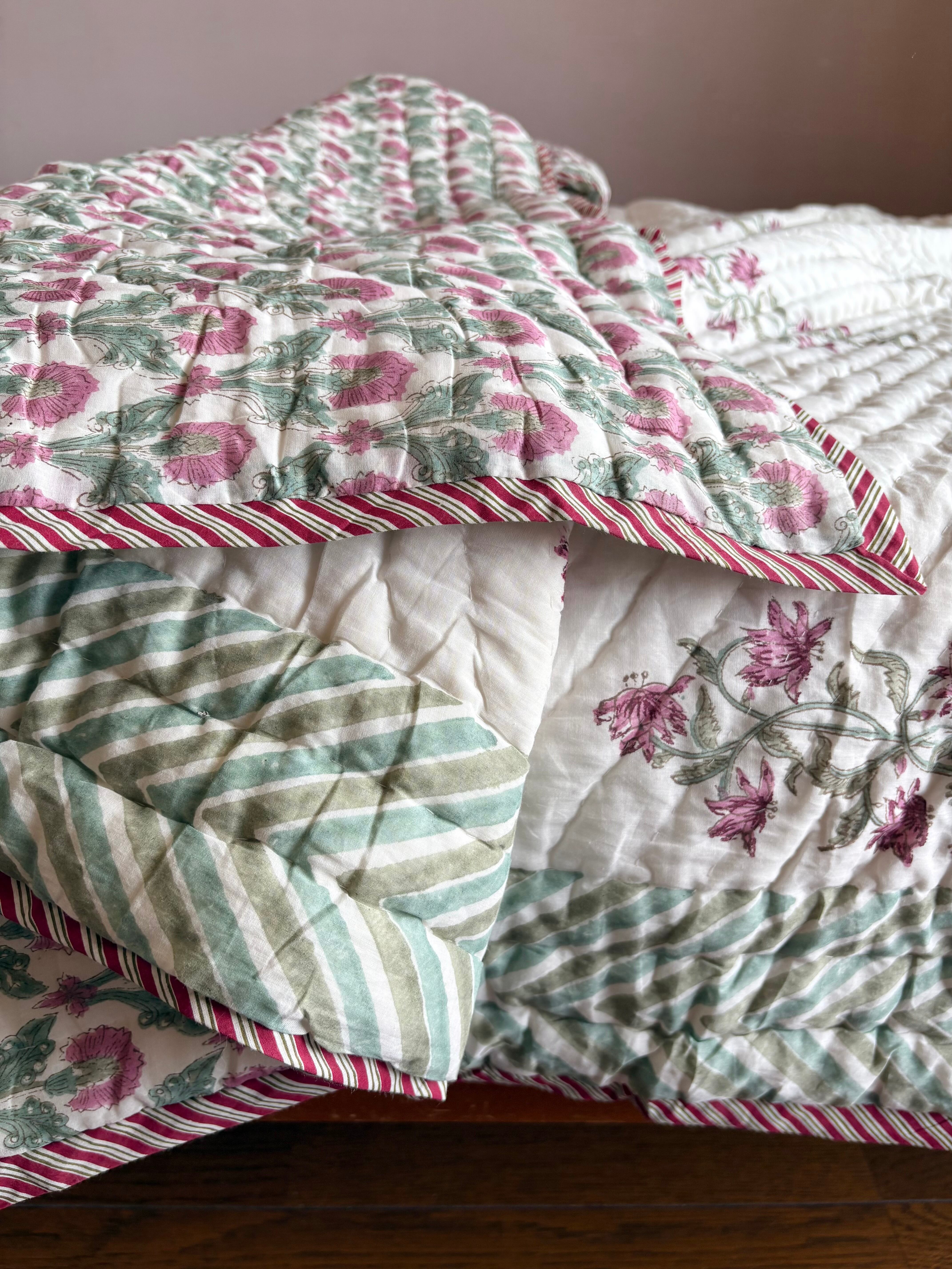 インド・ラジャスタン州ジャイプール伝統の木版染ハンドキルトの肌布団です。
