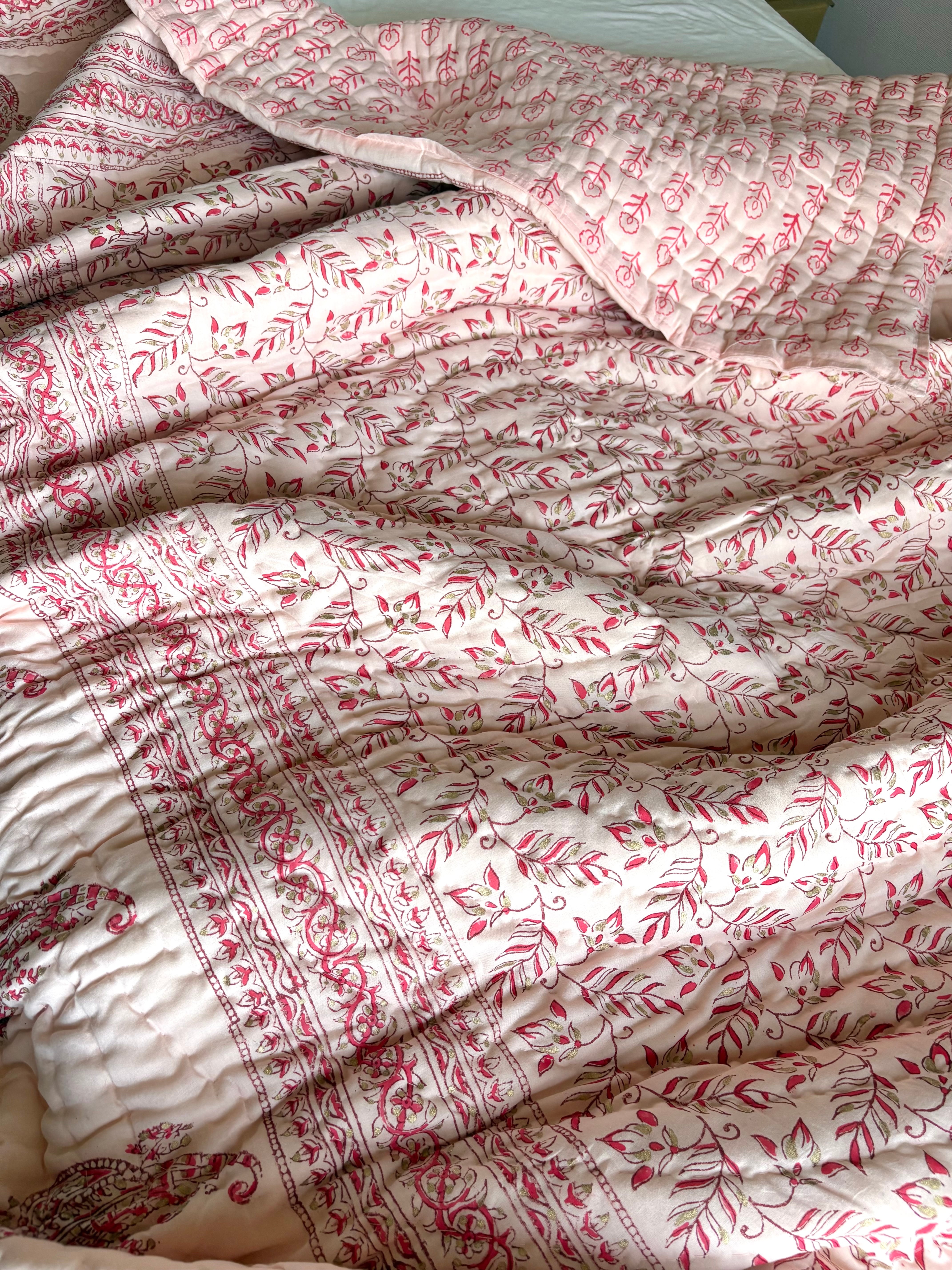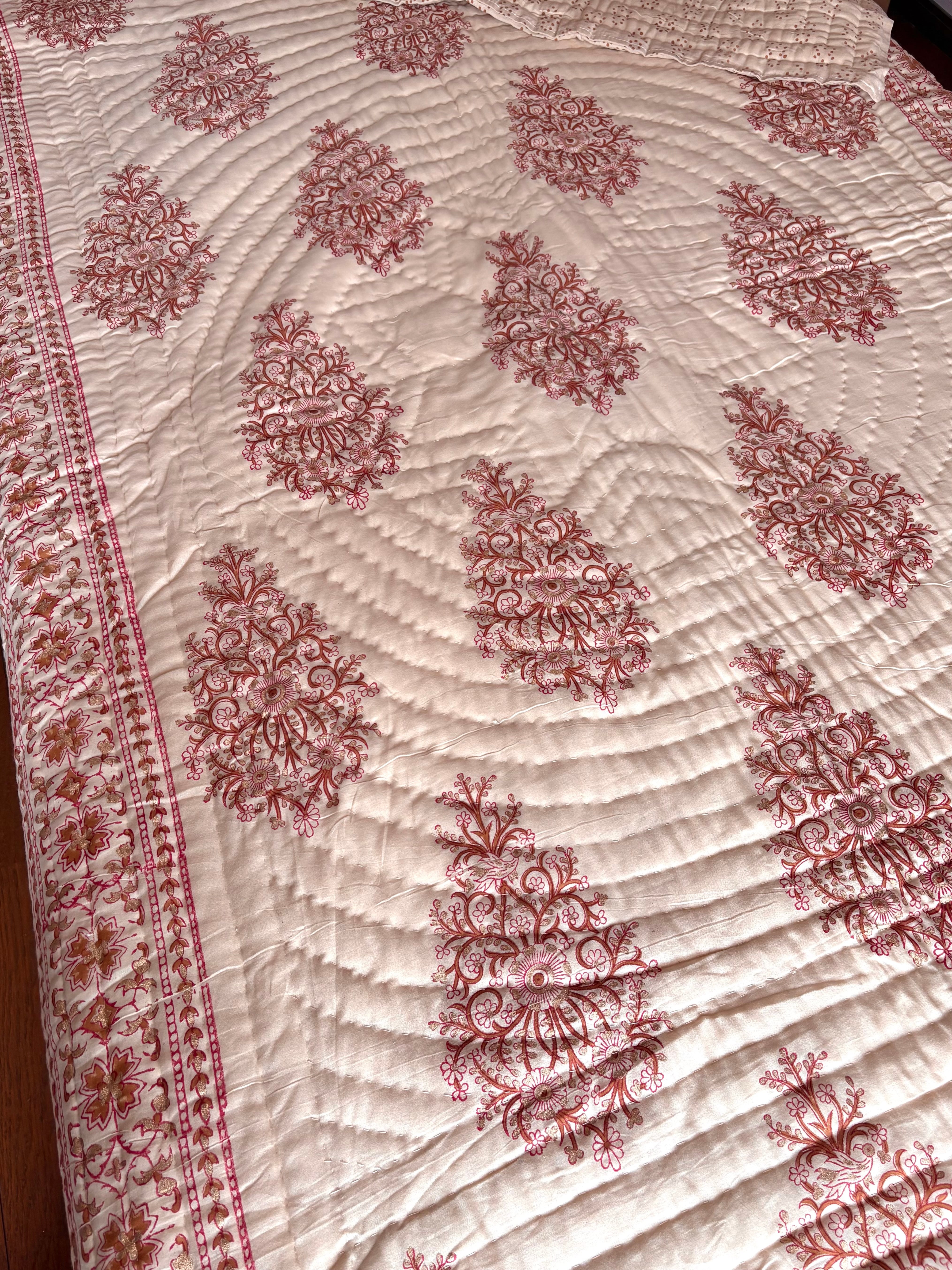 ジャイプール伝統ブロックプリントのハンドキルトの肌布団です。
