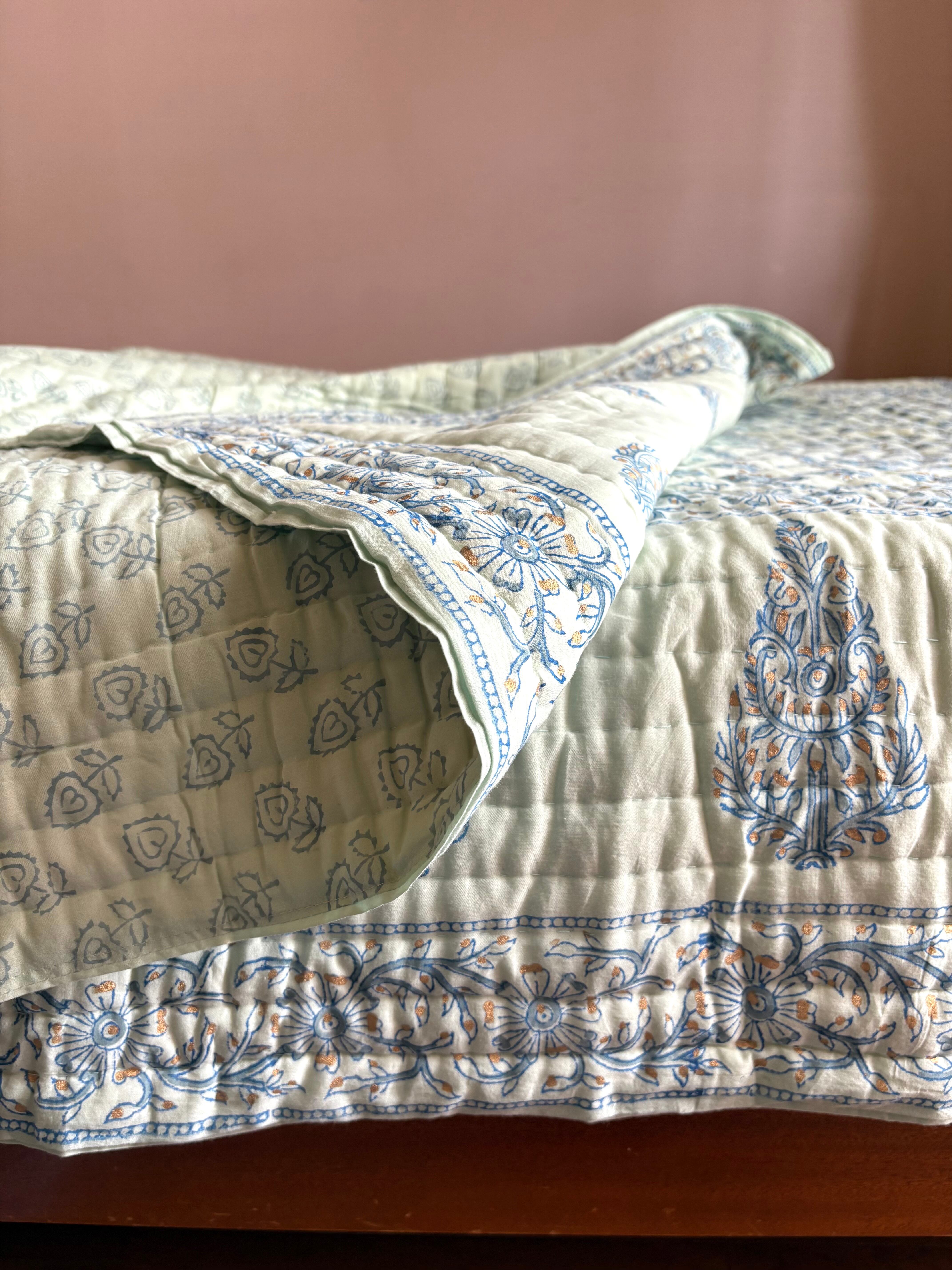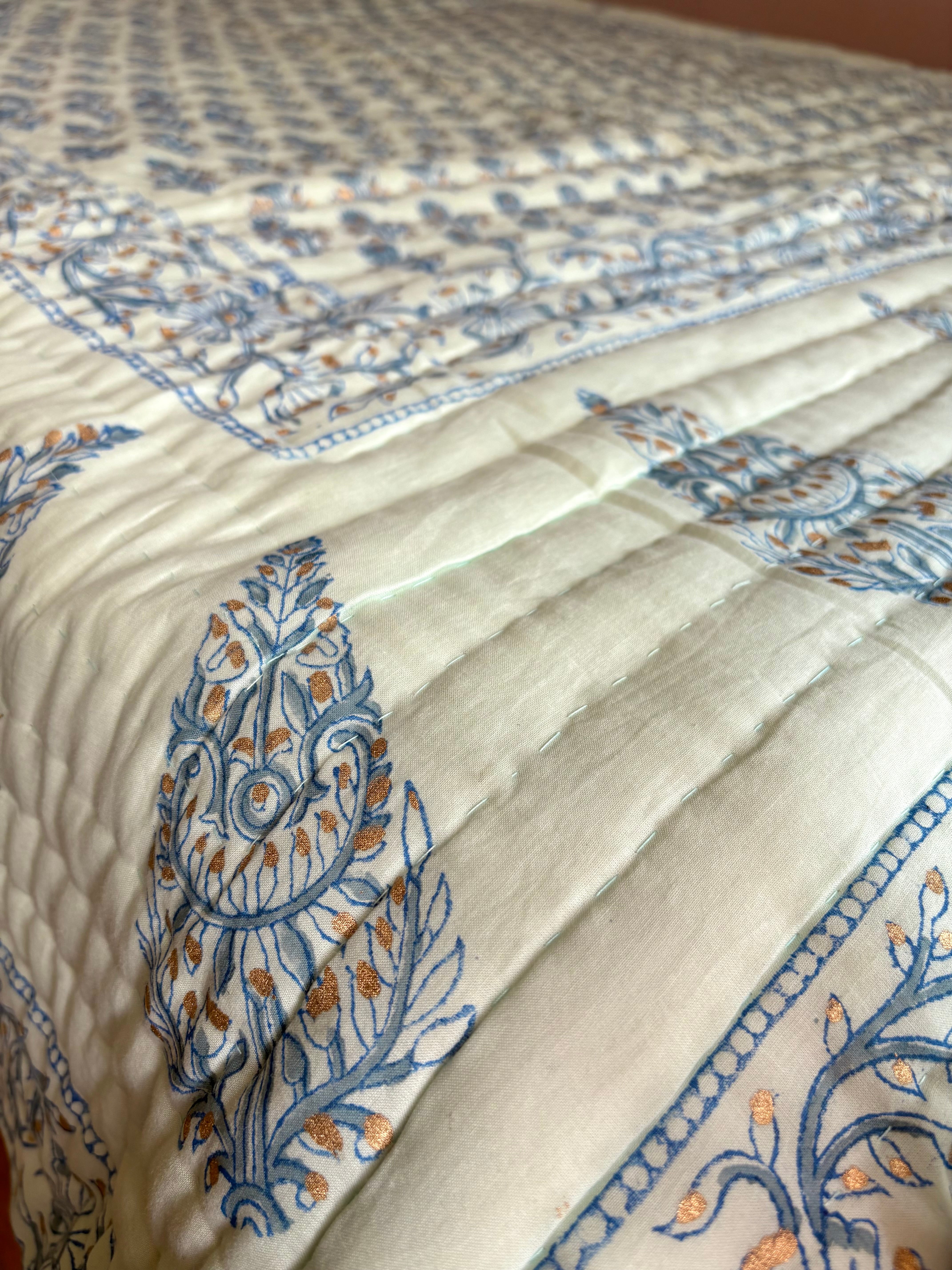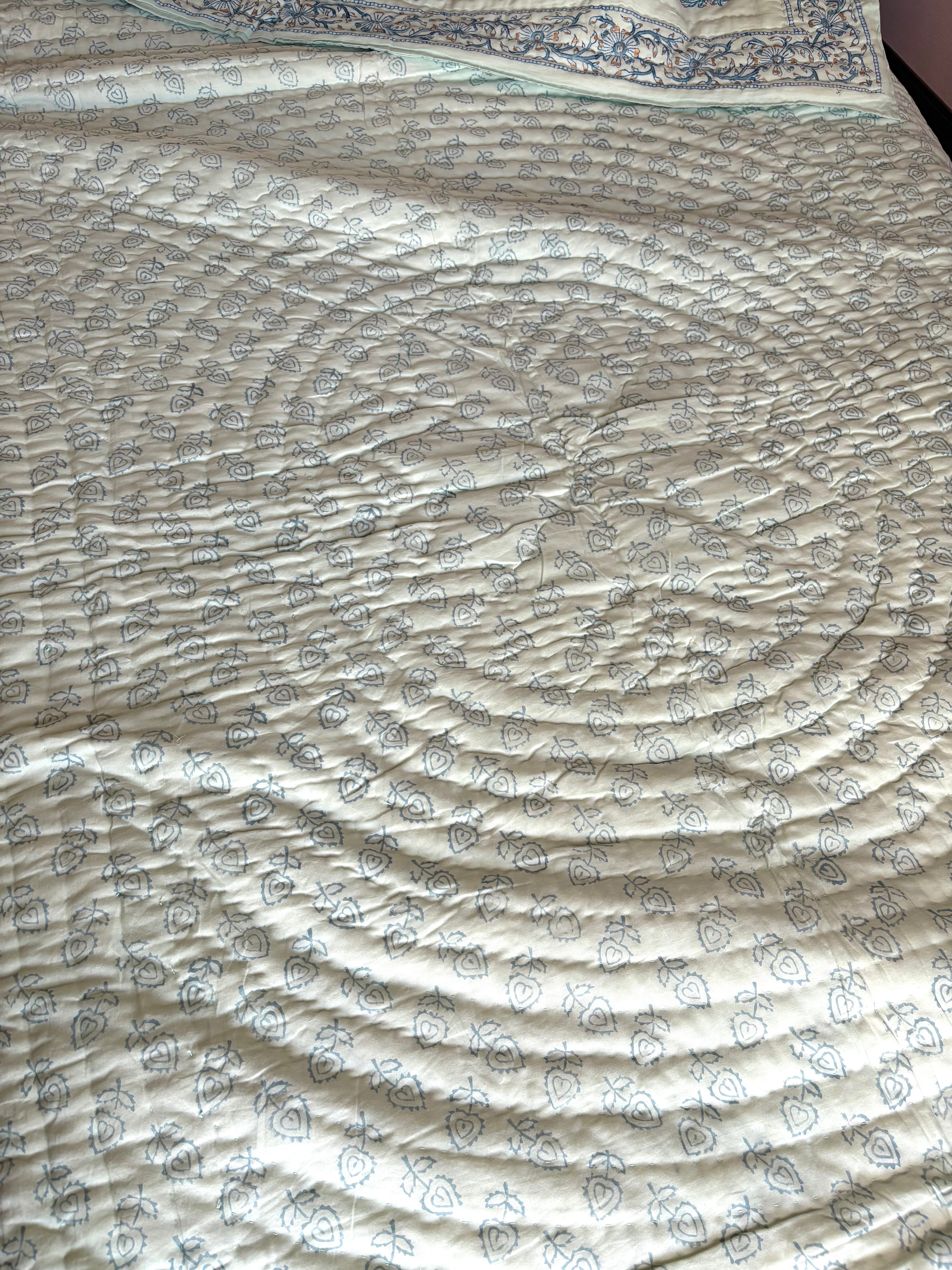 ジャイプール伝統ブロックプリントのハンドキルトの肌布団です。