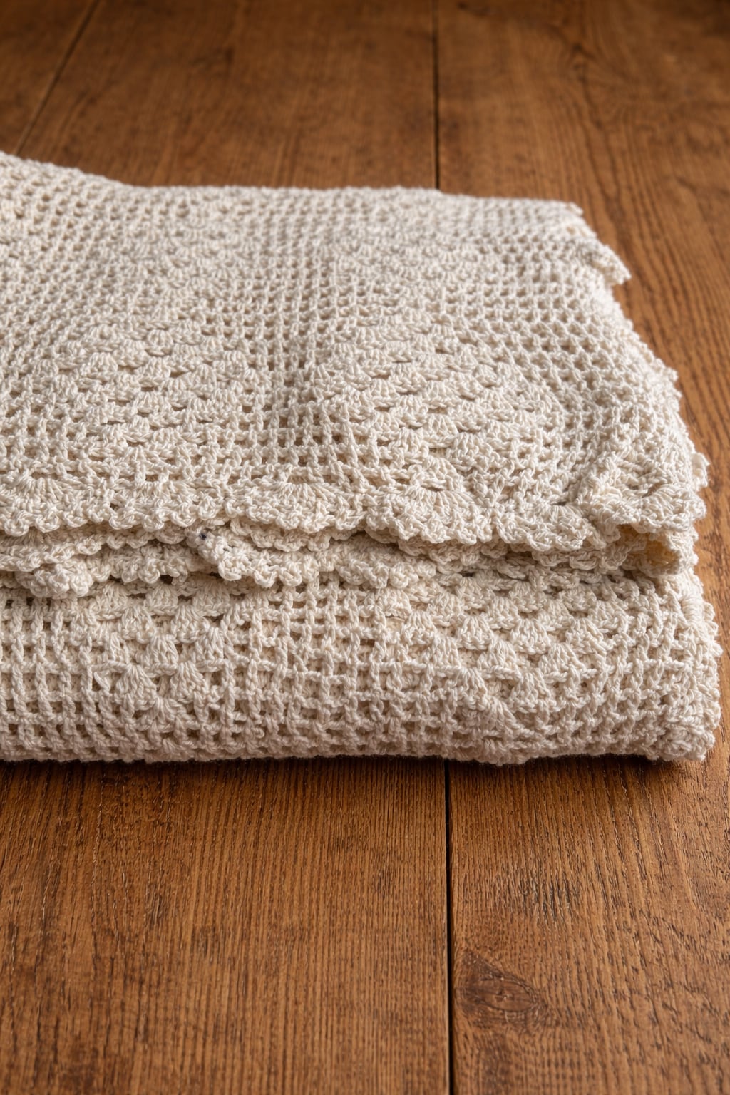 手編みの温かさを感じる、コットンクロシェカバーです。
