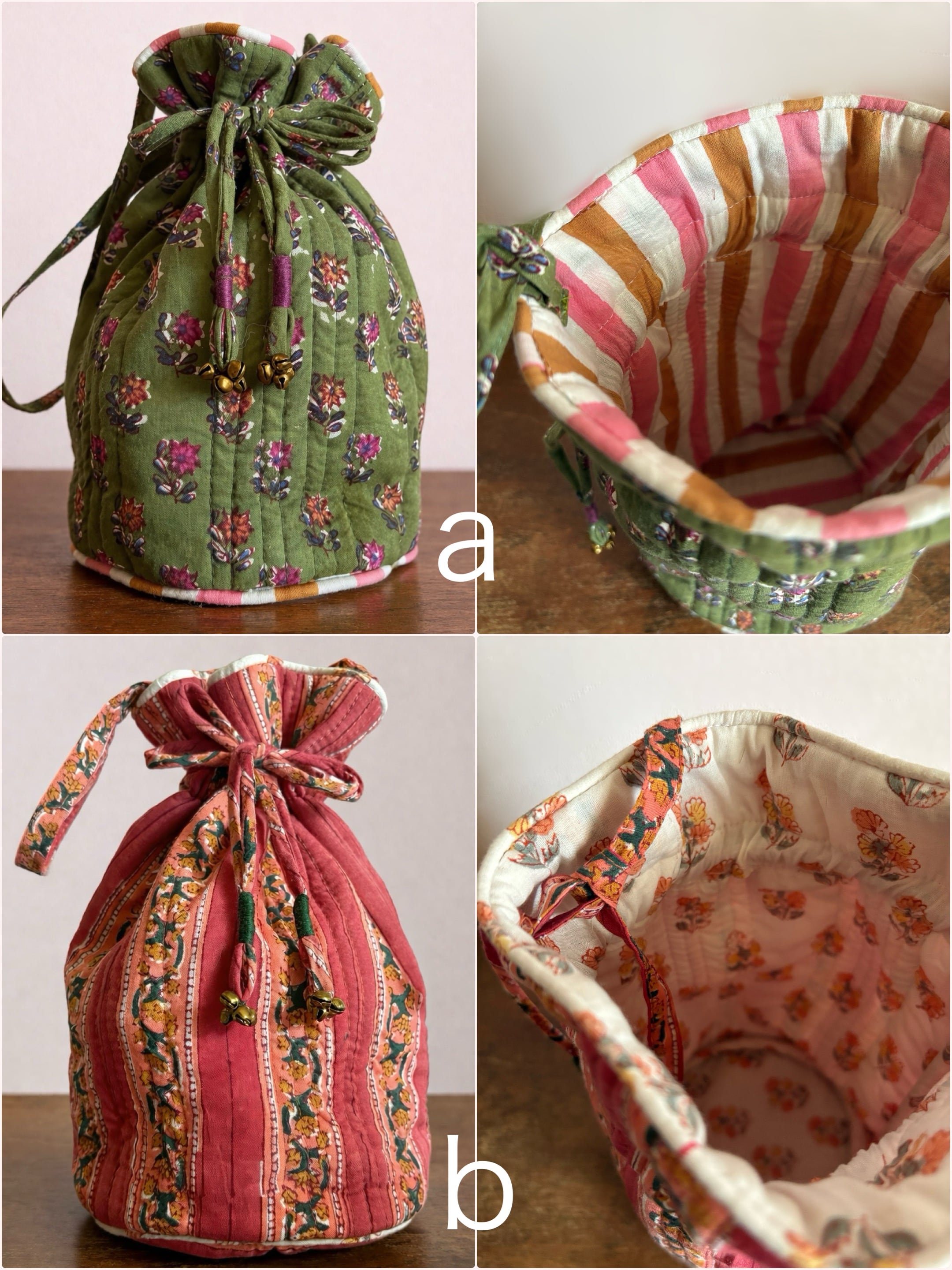 別珍とブロックプリント特有の色落ちと色移りを防ぐため、他のものとは別に、アルカリ性洗剤かおしゃれ着用洗剤をお使いの上、水で優しく手洗いをしてください。