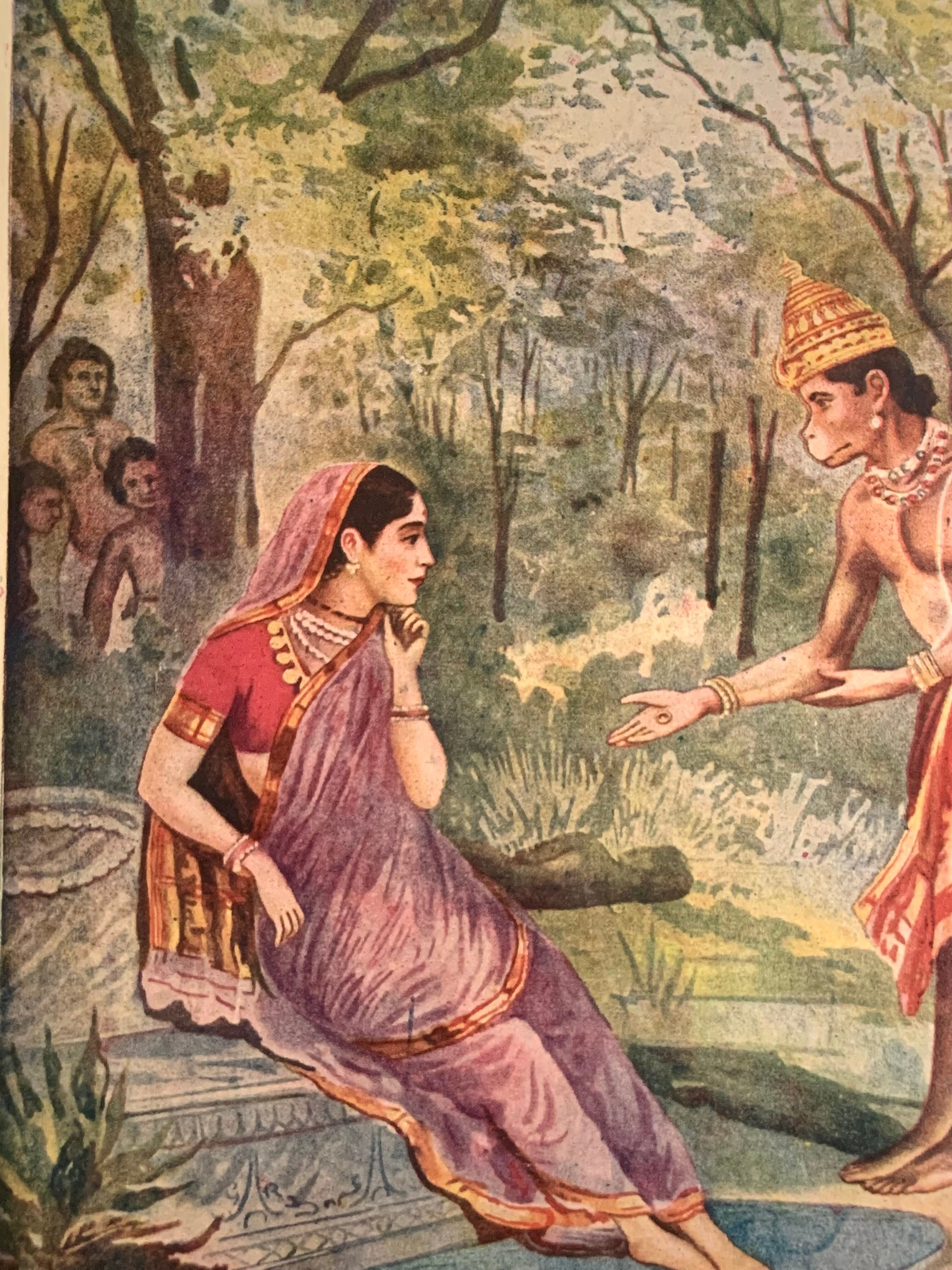 連れ去られたラーマの妻シーターを助けに来た場面かもしれません。