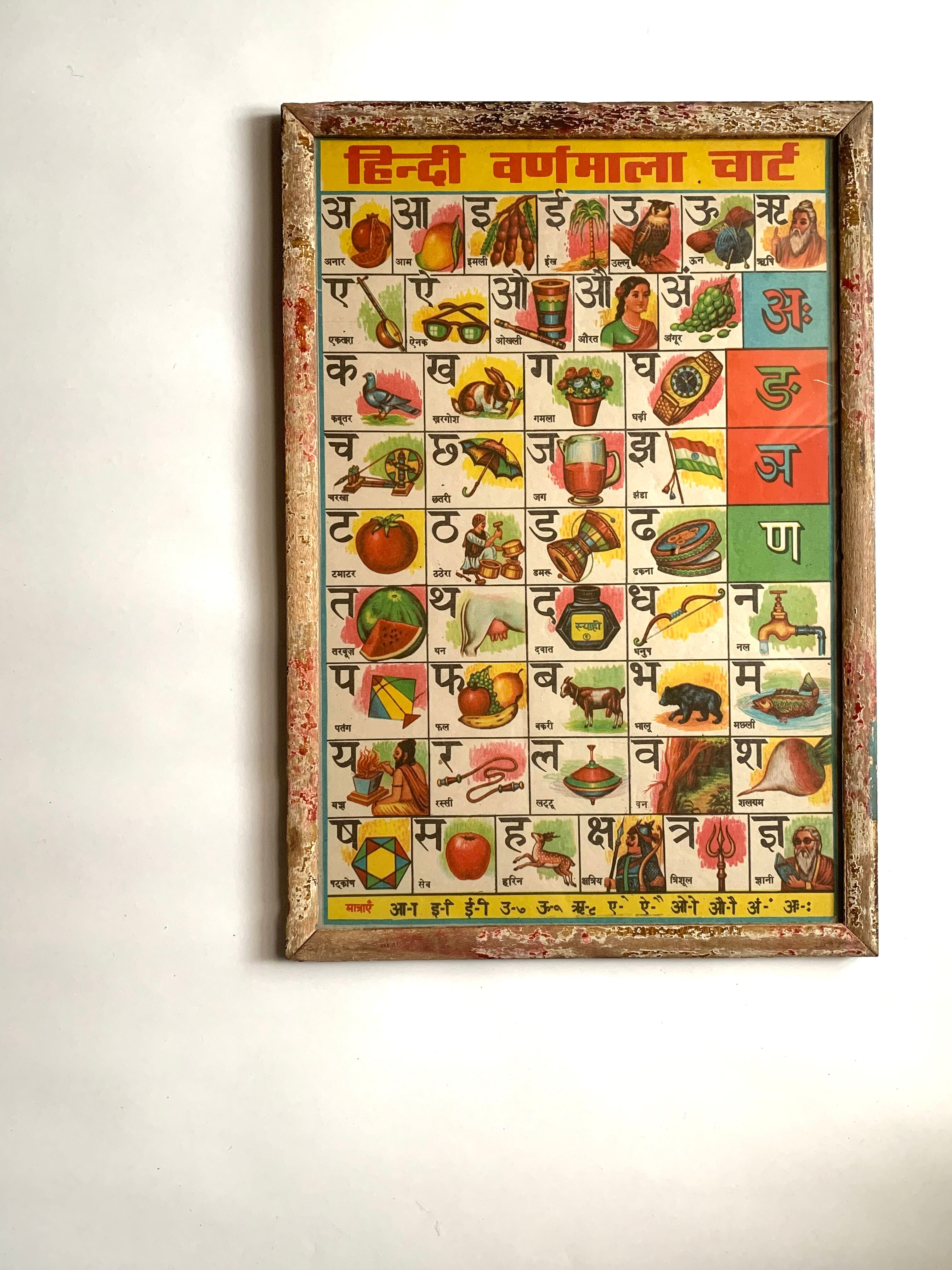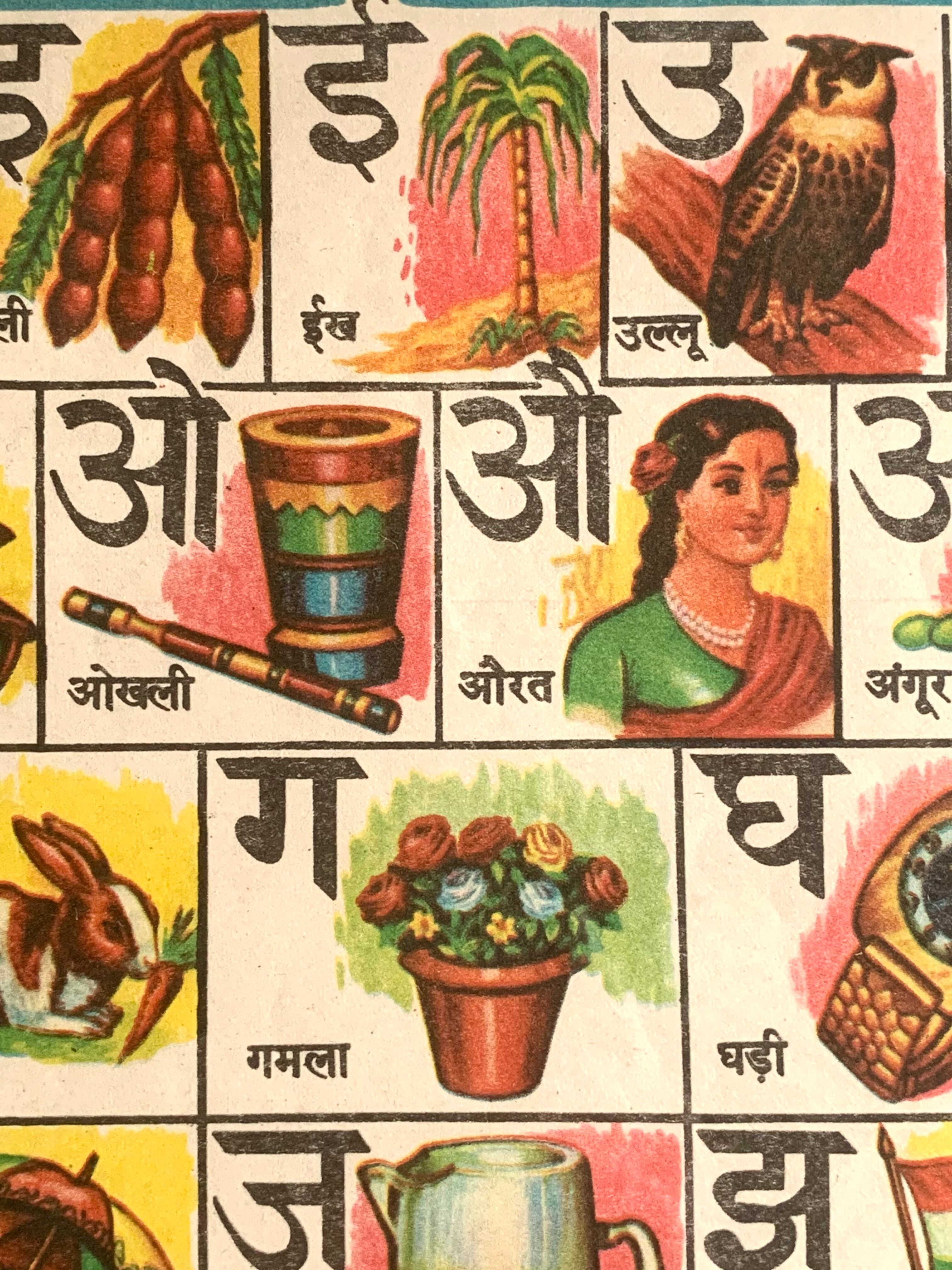 デーヴァナーガリー文字の学習用の古いポスター。