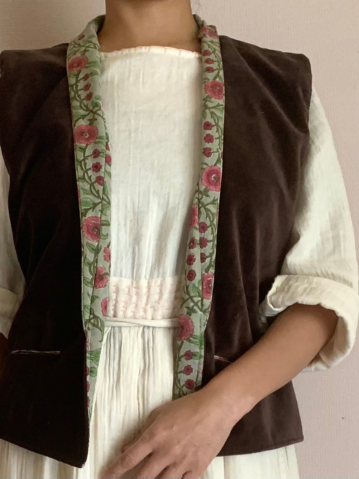 柔らかく滑らかな肌触りのコットン100%ベルベットのベスト。